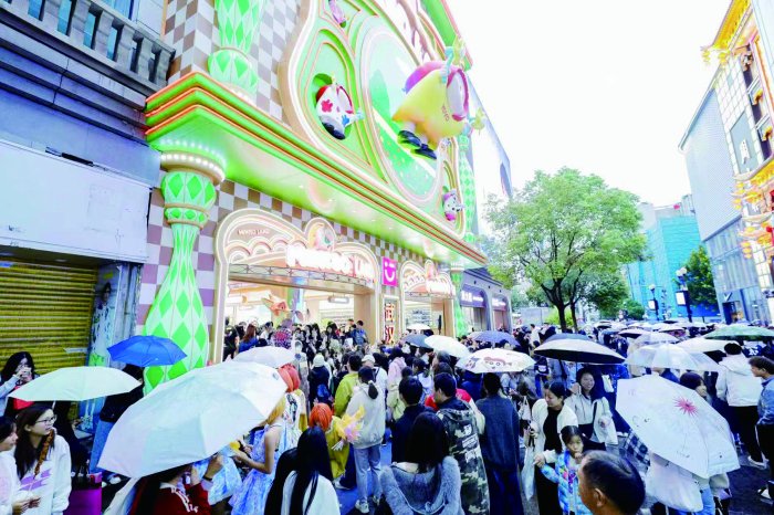 最近,到武汉江汉路步行街打卡人气潮玩IP“右右酱”的美陈形象、再买个“右右酱”盲盒,已成为不少游客的新选择。随着“右右酱”新款盲盒在部分线下门店抢先发售,每天都有不少粉丝早早到店抢购。